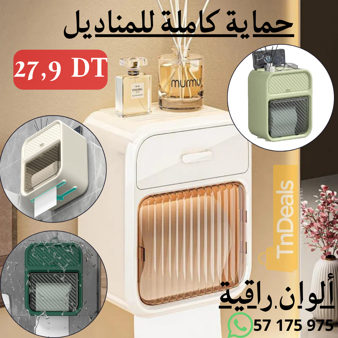 ما تخافش من الرطوبة ولا من الماء وقت الدوش المناديل تبقى ديما ناشفة ومحمية.